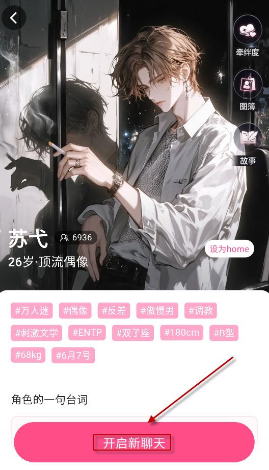 2、进入角色详情页后可以查看相关信息,点击修复的“开启新聊天”按钮。