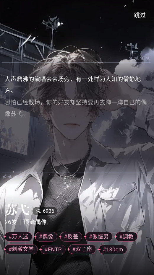 3、然后会进入一段背景剧情演出,可以点击右上角的跳过按钮。