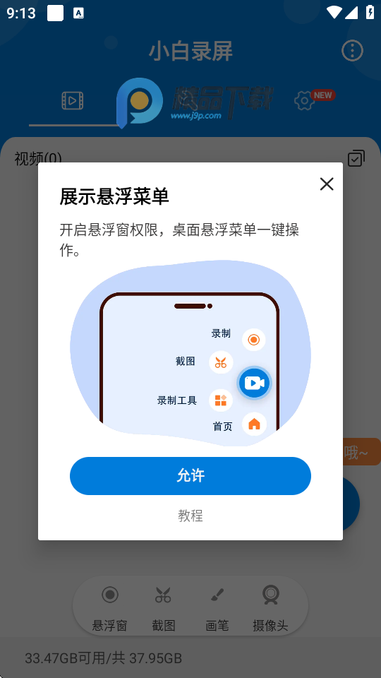 -游戏录屏:录制游戏画面,通过桌面悬浮窗,实现边玩边录;