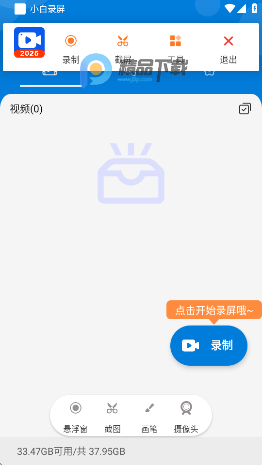 [1]您可以从小白录屏首页底部的开始按钮来开始录制,开始录制后,如果你开启过悬浮窗权限,那么悬浮窗会自动出来。