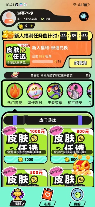 天天嗨皮APP是一款专为游戏爱好者设计的实用工具类软件,该应用专注于为玩家提供丰富的游戏福利,尤其是免费获取热门游戏的各类皮肤资源,适合追求性价比与个性化装扮的用户群体。