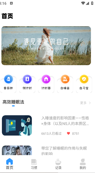 4、通过“记录”板块,查看成长统计、自律成就及历史记录等信息。