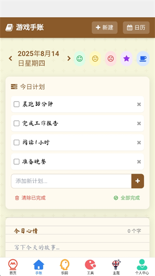 3、进入到手账板块,可以去新建手账内容,根据日历呈现去完成手账的记录。