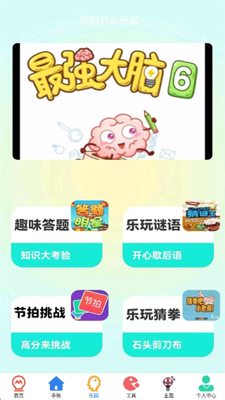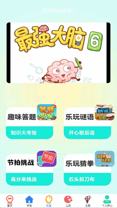 4、乐园界面各种有趣小游戏直接畅玩,还可以开启趣味答题操作,猜谜考验你的脑力。