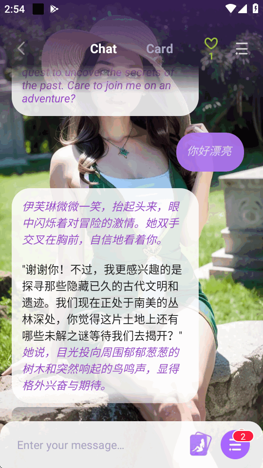2、配备丰富的场景画面,在与角色聊天时,会呈现对应的场景,增强聊天的代入感和沉浸感,营造奇幻氛围。