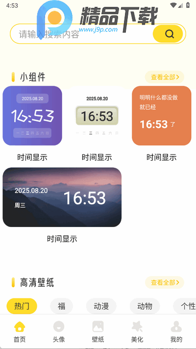 2、首页有许多推荐小组件以及高清壁纸,还可以自行搜索想要的内容。