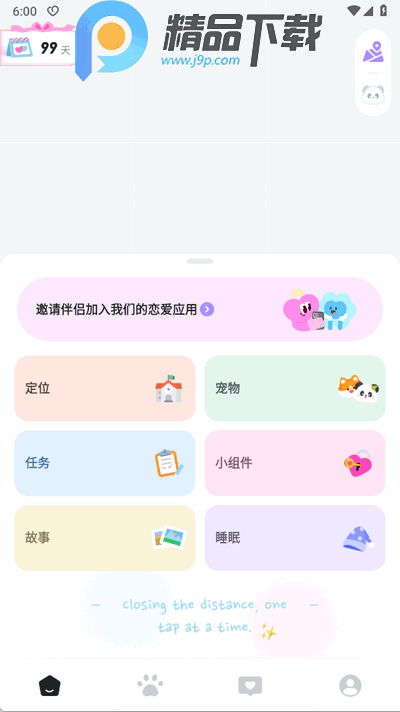 Love8是一款专为情侣设计的应用,可即时查看对方的地理位置、移动速度、电池电量及停留时间,还支持共同喂养和照顾电子宠物,帮助伴侣加深情感联系、提升亲密度,是情侣间非常实用的软件,有需要的用户快来下载吧。