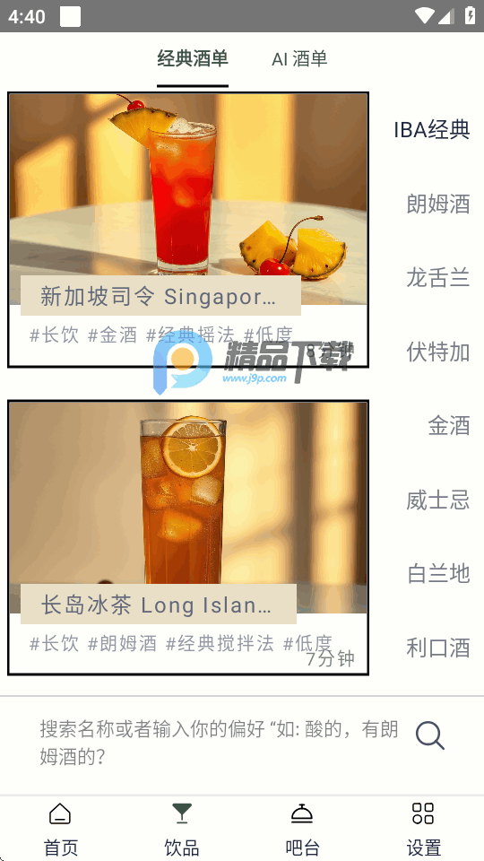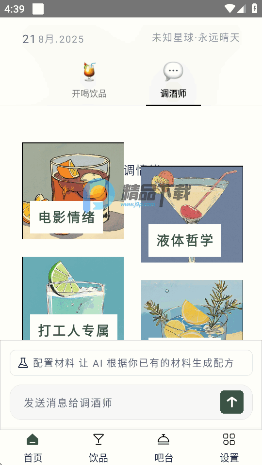 3、记录口感与心情、多种视觉风格选择,让在家调酒的过程更具仪式感,将普通的饮品制作转化为富有乐趣的生活体验。