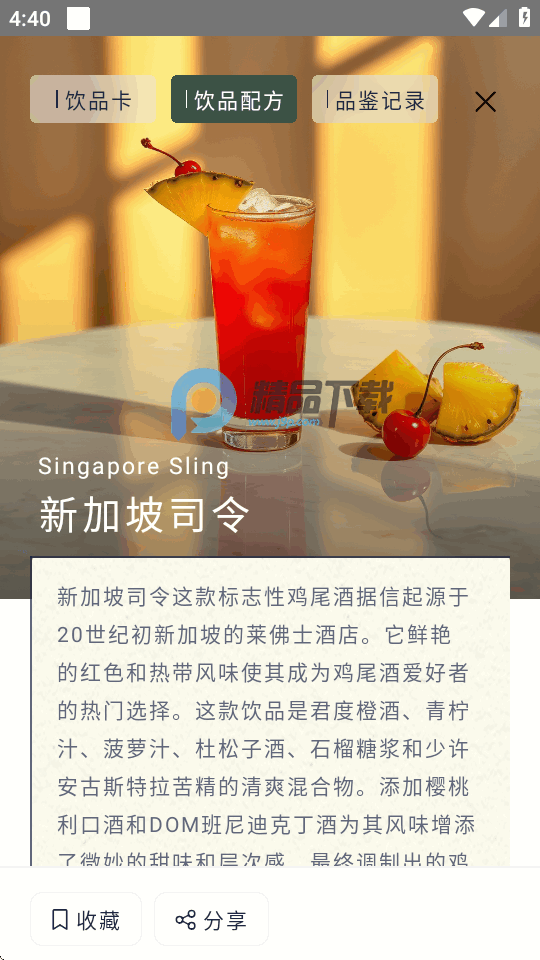 2、200+原料信息库帮助用户深入了解基酒和原料特性,不仅能照方制作,还能举一反三进行创新,提升创作能力。