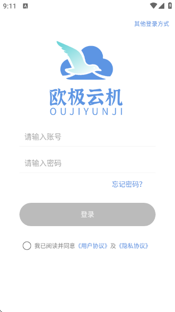 1、下载并安装好这款欧极云手机APP,然后打开;