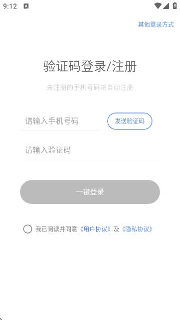 4、若是没有账号,可以通过右上角的【其他登录方式】来注册账号。如图所示,输入手机号,和验证码,最后点击【一键登录】完成注册。