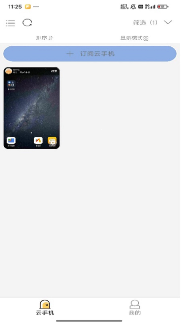 5、登录成功之后直接进入到【云手机】界面中,如图所示。已经有一个免费体验的云手机环境,
