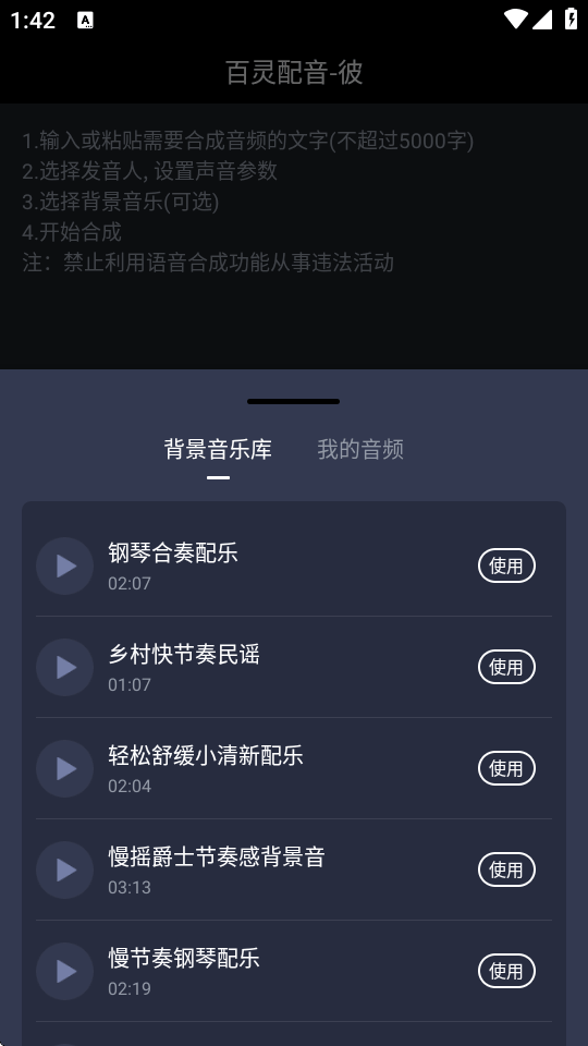 界面清爽干净快速进行配音的工具,百灵配音-彼是最新版本版,直接复制文本就可以轻松进行配音操作,内置丰富的角色及背景音乐可以选择,轻松匹配你想要的效果和场景,配音后的文件支持快速修改试听等操作,真心易用好用,任何人都可以快速上手的免费配音。