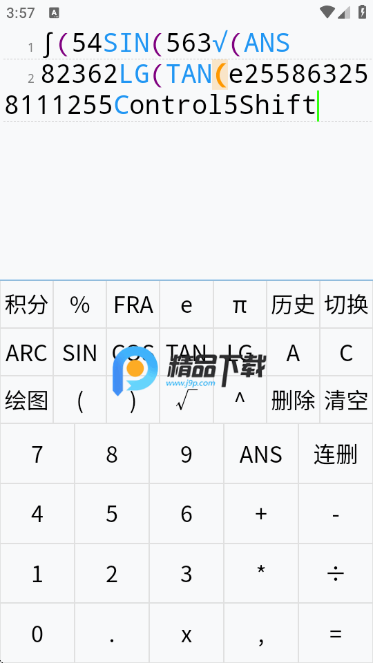 二十一.键盘映射说明(这个后面放弃了,加的功能太多,估计有bug): Backspace→删除单个字符,Delete→删除连续字符,Escape→清空,单击f→∫(,s→SIN(,c→COS(,t→TAN(,l→LG(,r→√(,p→π,a→ARC;双击a→A,c→C,f→FRA(;Tab→ANS,^直接输入或者**。