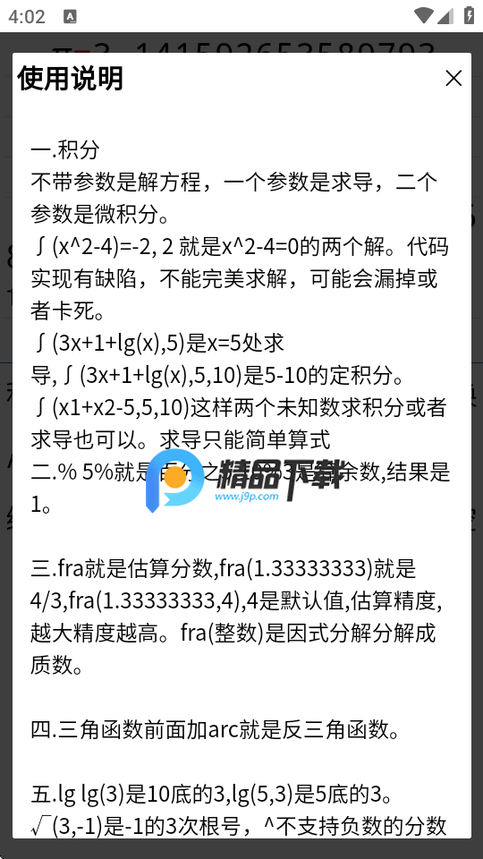 十四.输入那里可以改计算精度,非16精度下手动输入i可以阶乘。绘图和积分,fra不受到高精度影响。