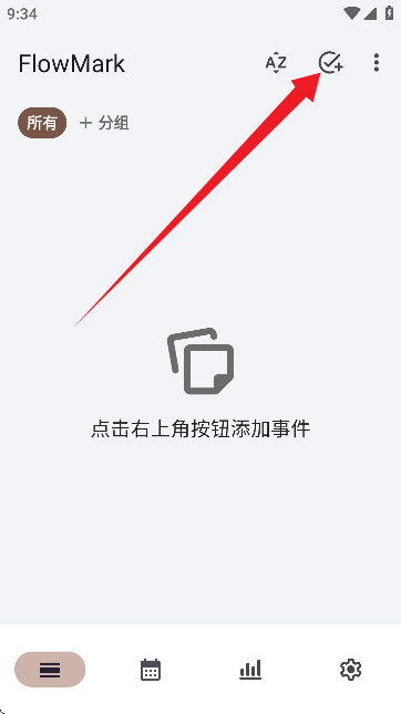 3、进入到软件首页,如图所示;点击右上角按钮添加事件。