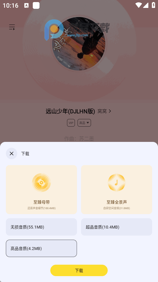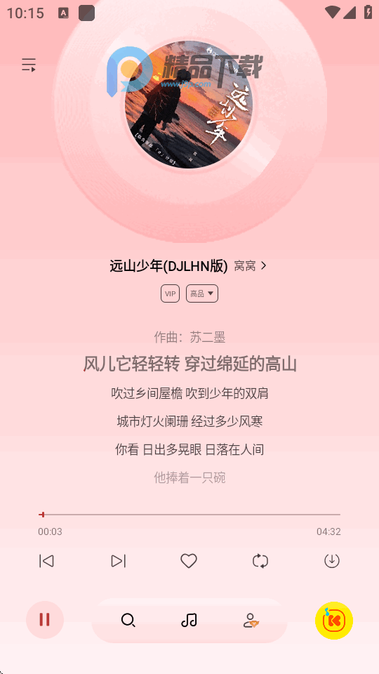 2、进入软件后会直接播放歌曲,点下方的下载按钮。