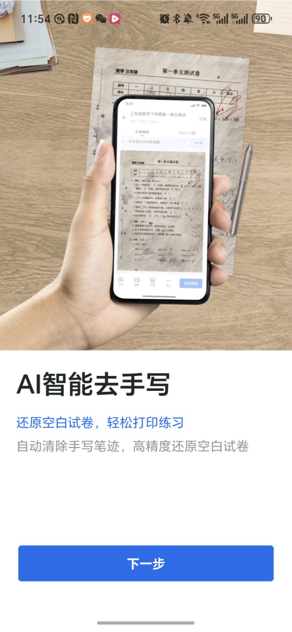 1、只需用手机拍照试卷,然后导入,字迹会自动消除。之后还可以裁剪试卷尺寸,并转存为Word文件。