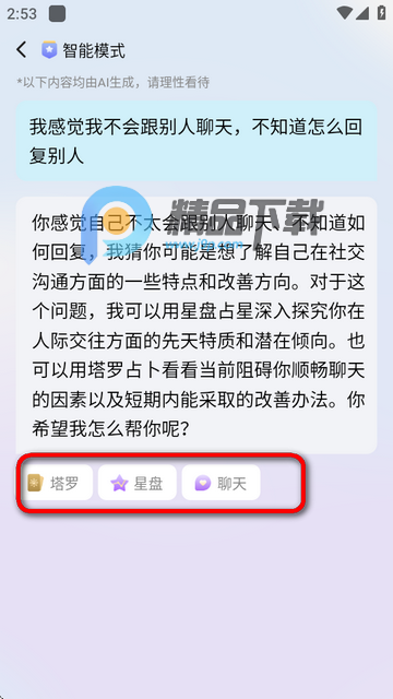 1、覆盖五大核心需求场景 —— 运势解读(日常 / 阶段运势分析)、情感梳理(亲密关系 / 人际困惑指导)、财富视角(财务规划 / 机遇判断参考)、事业探索(职业方向 / 职场困境建议)、自我认知(性格特质 / 内在需求挖掘),同时提供烦恼疏导支持,帮用户缓解情绪压力。