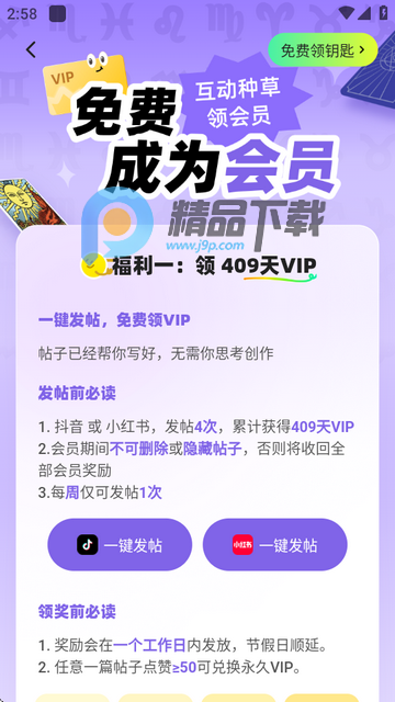 1.抖音或小红书,发帖4次,累计获得409天VIP