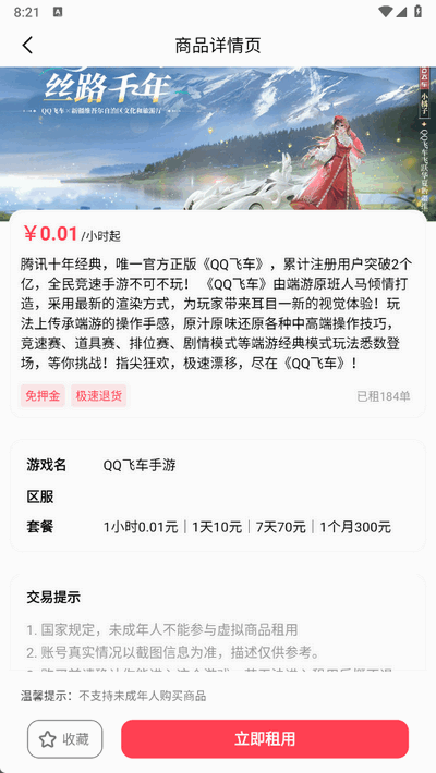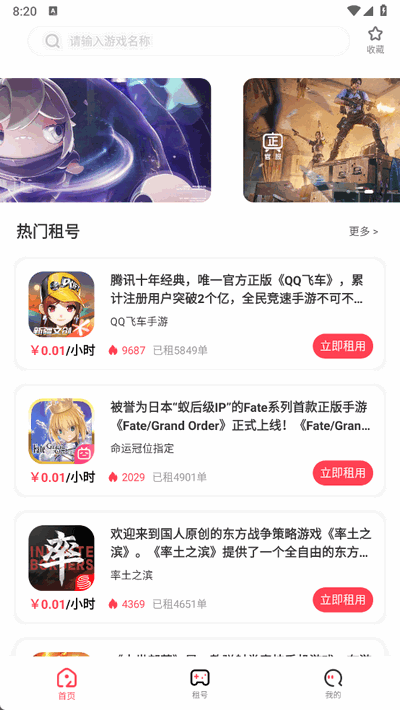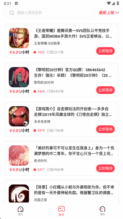 4、任意选择一款感兴趣的游戏账号,直接点击“立即租用”即可。