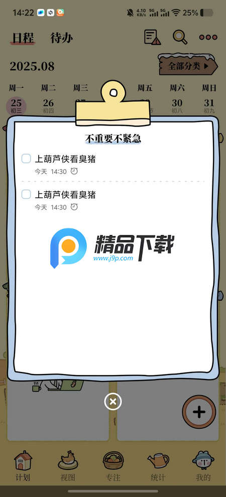 1、在本站下载安装并打开番茄计划清单app,进入应用主页,如图;
