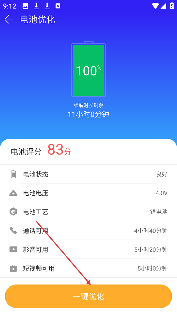 2、点击电池分析,可以检测电池的问题状况,检测完后点击一键优化即可对电池优化;