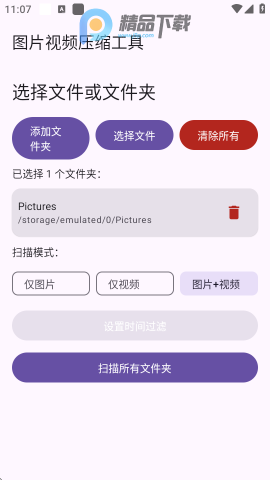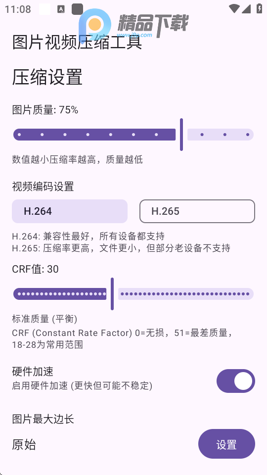 界面相当简洁,不需要登录,不用很多权限的一款免费的手机批量图片视频压缩工具,压缩图片视频app手机版完全免费好用,可以快速进行压缩备份手机上的原图及原视频,可随意设置压缩参数,让图片视频不失帧的情况下更好的保存。