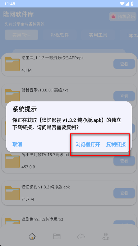 2.点击浏览器打开或者复制链接,接着按照软件的提示操作即可下载啦。