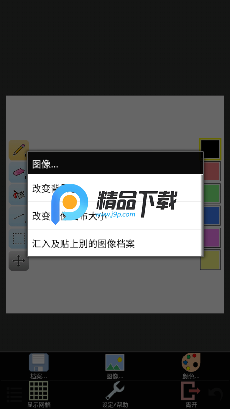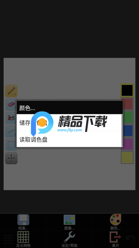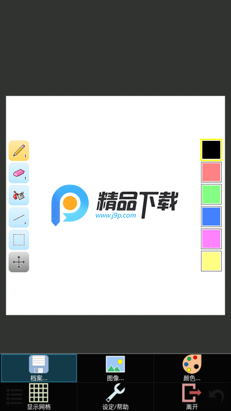 - 基本图形、不同大小的笔及橡皮擦、范围灌色、图上取色及编辑还原功能等