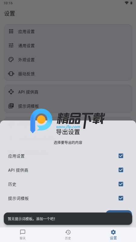数据管理:所有数据(配置、聊天记录)都存储在本地。支持一键导出和导入备份数据,方便迁移和共享。