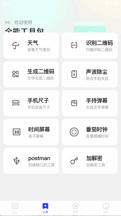 秋枫万能口袋app是一款功能全面、实用性强的多功能工具箱软件,整合了200+种实用工具,涵盖文件管理、网络优化、识别扫描、创意制作、翻译等场景化功能,可以帮助用户解决日常各类需求。