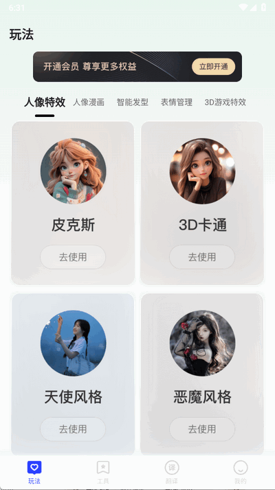 2、首页可以看到很多的特效滤镜,各种风格应有尽有,满足用户的各种图片美化需求。