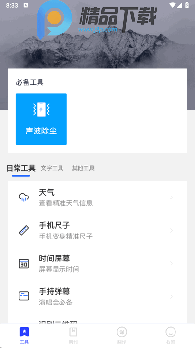 纺余工具盒是一款多功能手机工具箱软件,为用户提供声波除尘、日常工具、文字工具、其他工具、拍照翻译、语言翻译等功能,为用户提供了极大的便利,无论是学习、工作还是日常生活都有极大用处,有需要的用户可以下载一个。