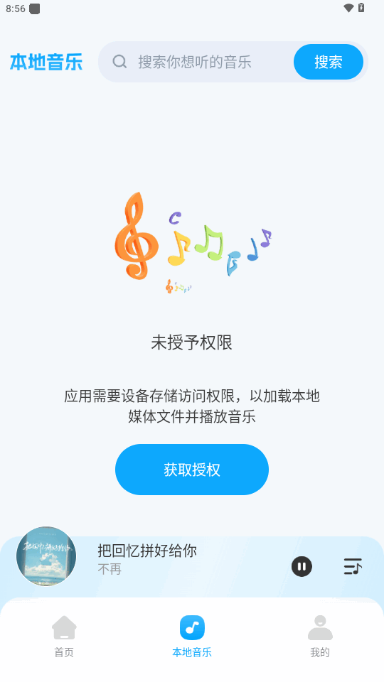 5、点开本地音乐,获取权限可以直接快速播放本地音乐。