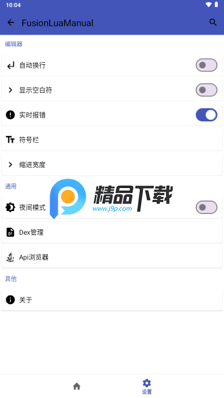 3、包含自动换行 显示空白符 实时报错 符号栏 缩进宽度 夜间模式 Dex管理;