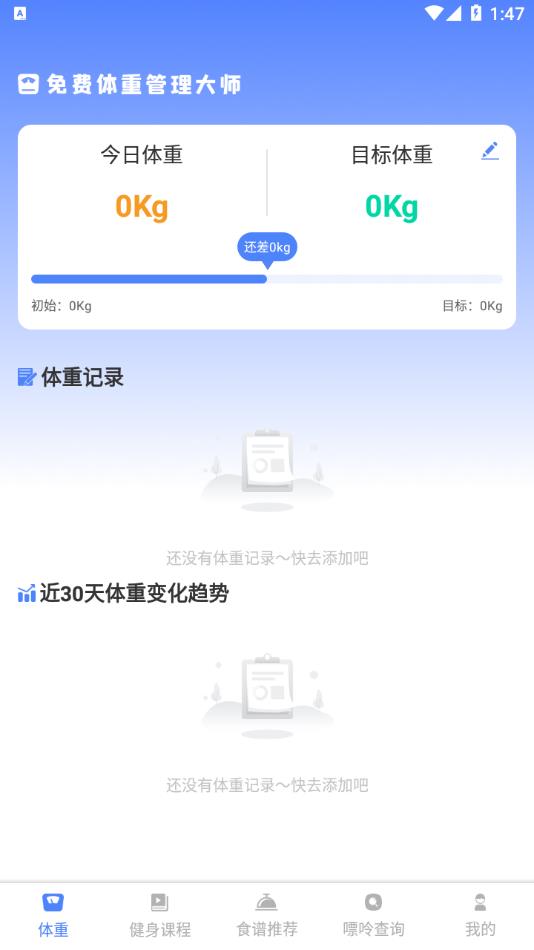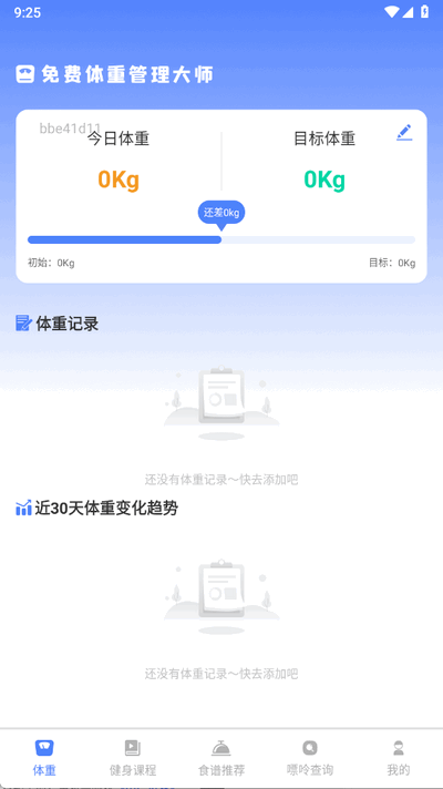 2、进入到体重界面,详细记录自己每天的体重数据,看看离目标体重还有多远。