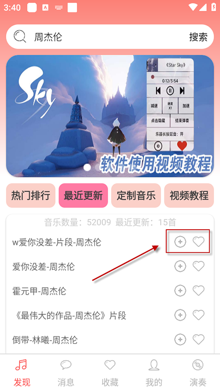 点击歌曲右侧“收藏”,可将其加入“我的收藏”,方便后续快速调用。