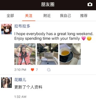 1、查看朋友圈,分享个人精彩生活,轻松互动