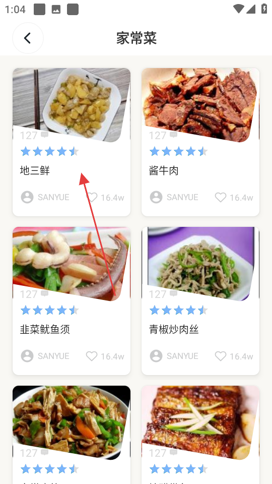 2、在家常菜页面,选择想要查看的菜品。