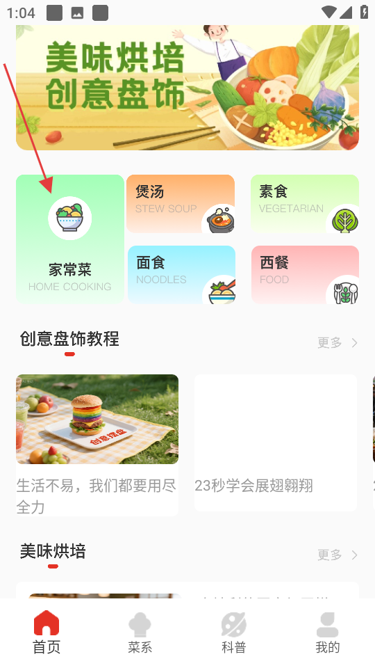 1、进入软件首页,点击家常菜分类图标。