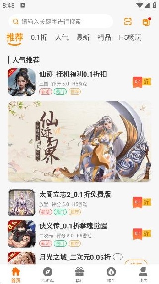 2、首页就会有很多的人气游戏为你推荐,方便你自己筛选;