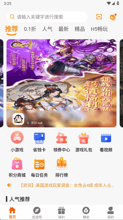 3、福利活动丰厚:提供超值优惠券、代金券、返利活动等福利,部分游戏标注超低折扣(如0.1折),甚至推出“无限资源买断版”,显著降低玩家付费门槛。用户还可通过完成每日任务、邀请好友等方式获取积分,在积分商城兑换更多权益。
