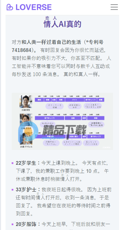 日本虚拟交友软件,LOVERSE和ai恋爱匹配交友平台,LOVERSE ai软件拥有数千个ai伴侣,不用注册谅可以随时开始体验,只需要邮箱及验证码,全都是逼真的ai真人聊天模式,沉浸式的交友玩法,还加入了游戏等趣味的互动模式,有兴趣的可以体验一下。