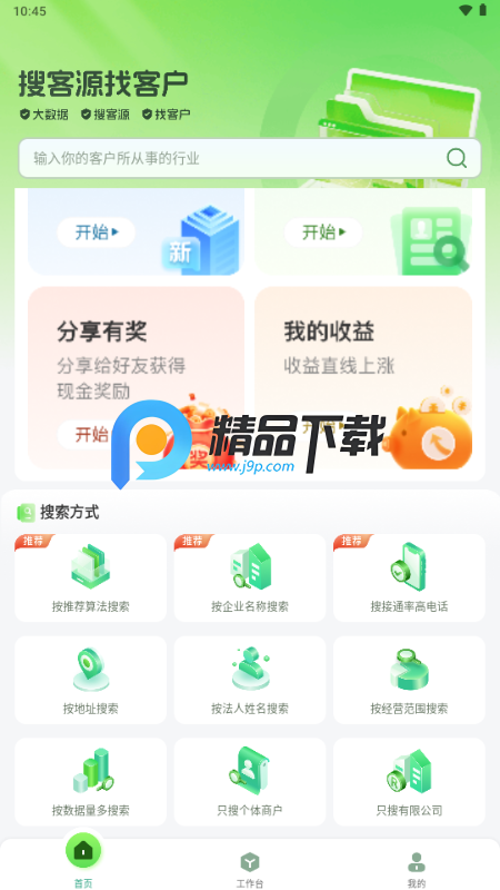 1、在精品网免费下载搜客源app;