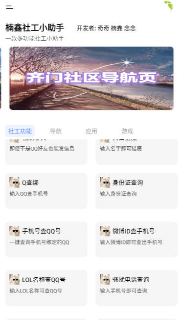 楠鑫社工小助手是一款专为社工人员设计的实用工具,它集成了多种QQ相关的功能,帮助用户高效管理社工库。这款软件提供了便捷的工具箱工具,让社工人员能够轻松处理日常任务,提升工作效率。无论是数据整理、信息查询还是其他相关操作。