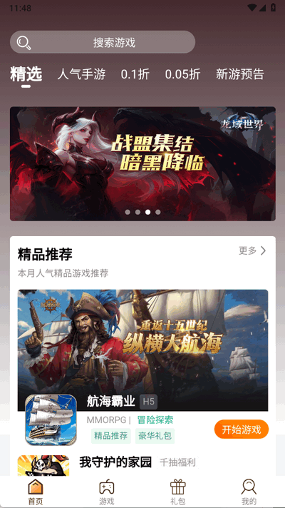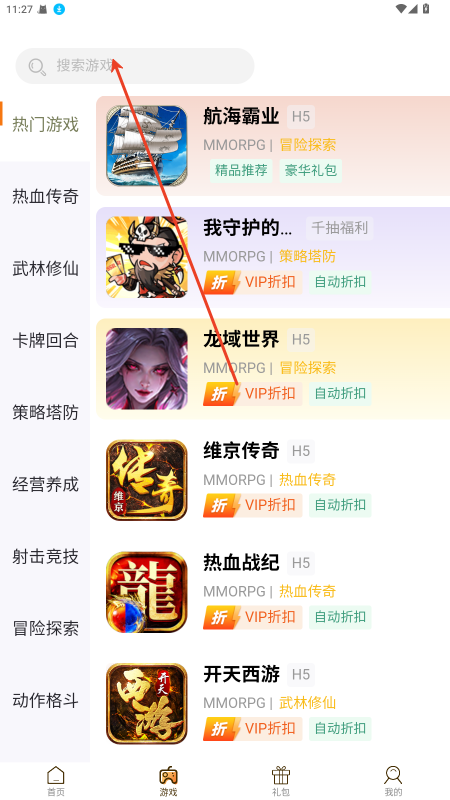 1.游戏按仙侠、传奇、卡牌、休闲等分类快速查找感兴趣的游戏。