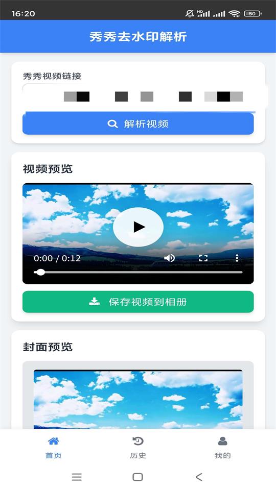 2、点解析视频后可以看到视频预览,封面预览,直接下载保存到相册。