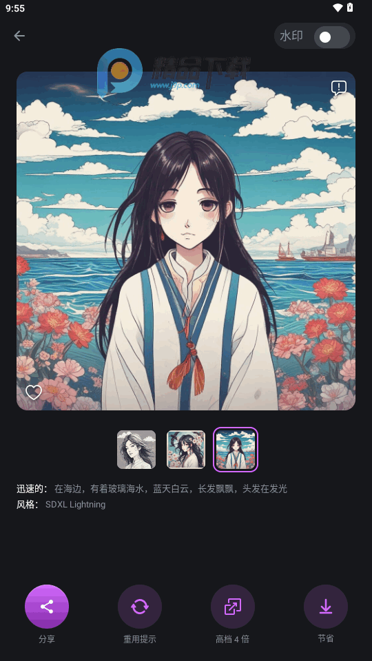 4、生成的图片选择自己满意的,然后可以分享,重生成及下载。