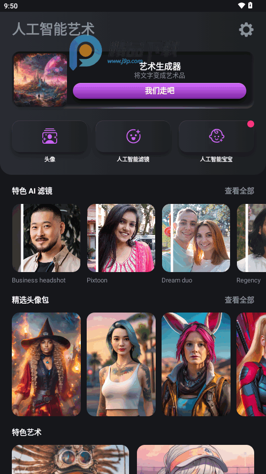 界面简洁清爽好用,不需要全员不用登录就可以根据文字轻松生成图片的工具,人工智能艺术AI绘画又名AI ARTA,功能很多,可以将你的想法转换成艺术图片,利用ai将图片重新生成你想要的效果,轻松制作个性有趣的ai头像,探索更多独特的滤镜,生成的图片可以直接保存。